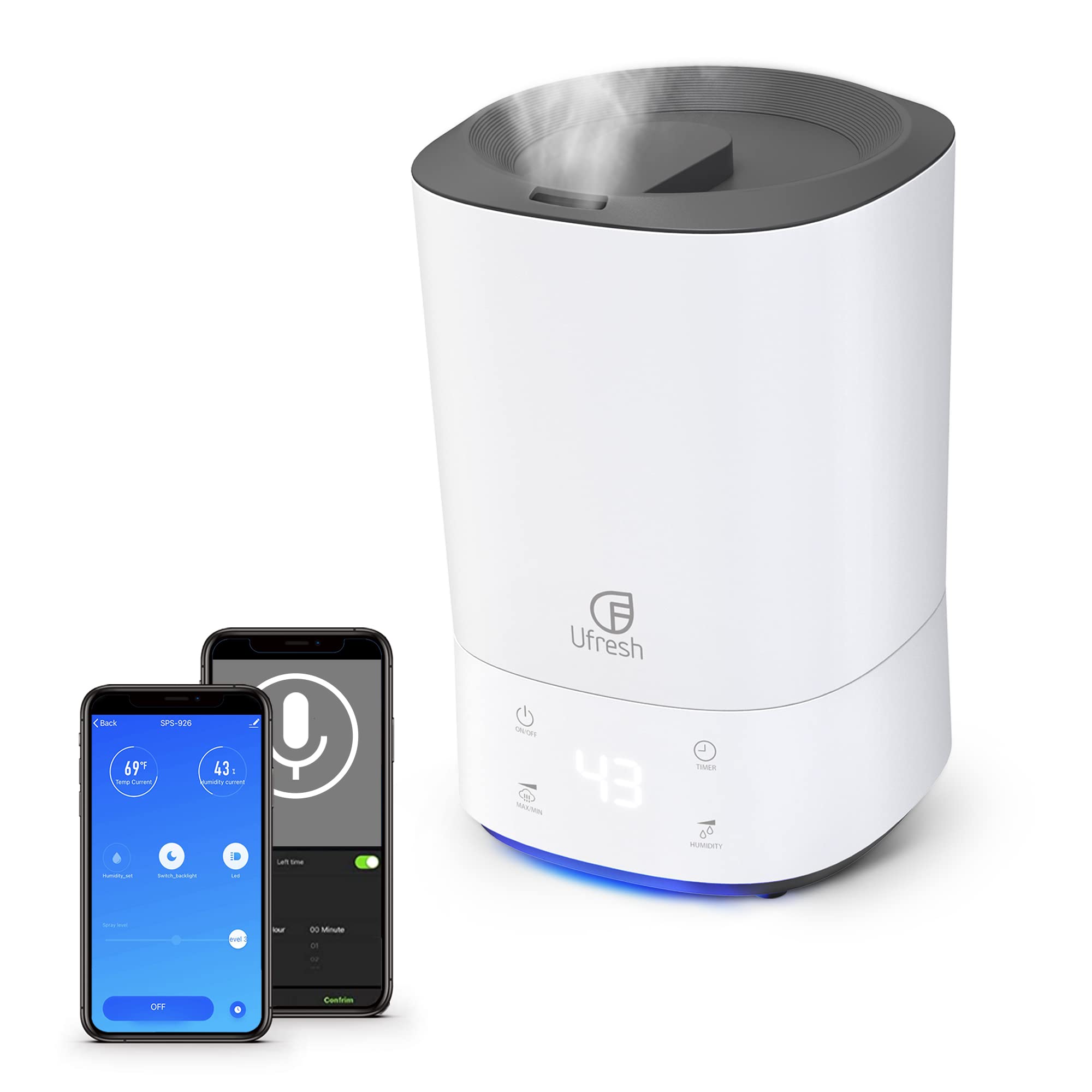 Amazon Com Humidifiers For Bedroom Ultrasonic Top Fill Cool Mist Air Humidifier For Large Room Plants With App Control 5 5l 1 45 Gal Tank Humidity Customization Essential Oil Tray Auto Shut Off Night Light Timer Whisper Quiet White